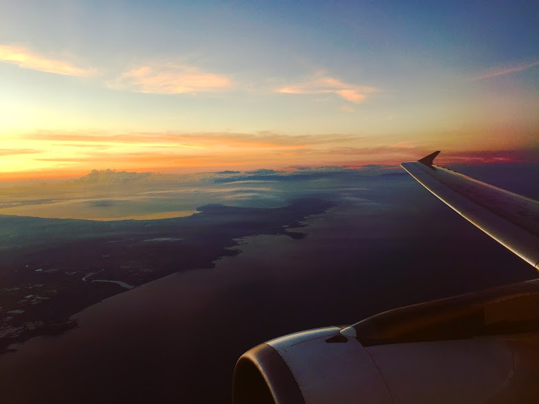 It’s a 3.5-hour flight. You will arrive around dawn and be welcomed with an absolutely gorgeous view of sunrise 😀