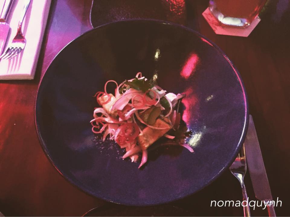 Ceviche is one of the most famous Peruvian dishes, originated from Spanish and West African influences. Here is the one with palm heart, avocado and tomato (VND90,000):