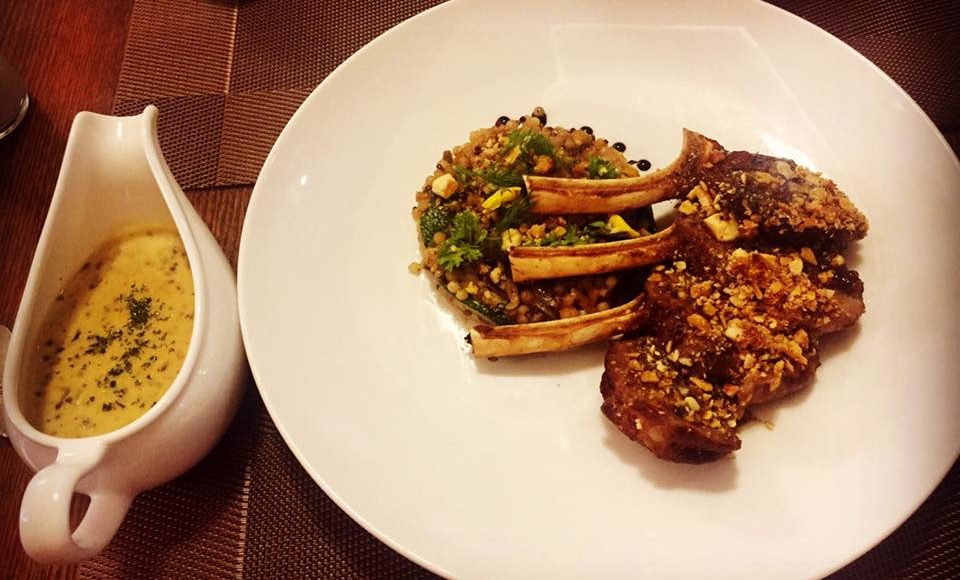 – Món chính – Sườn cừu ăn cùng couscous, bí ngòi và sốt mù tạt bạc hà đặc biệt (420k). Sườn cừu rất mềm, ăn kèm với sốt là một phần rất quan trọng của món này, tạo nên một sự kết hợp tuyệt vời. Riêng đối với couscous, nếu phải nhận xét một cách khó tính thì mình ưng dạng hạt couscous nhỏ hơn, tuy nhiên đây có thể chỉ là sở thích cá nhân.